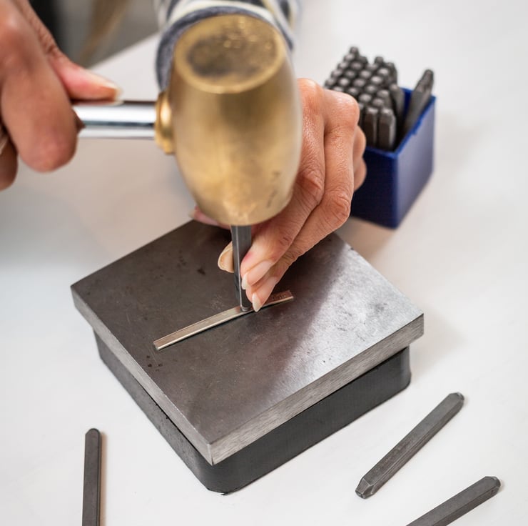 Influenced by ancient cultures, geology, inspiring quotes and travel adventures! My work features lots of metal marking such as hand stamping, hammering and fusing all using 100% recycled sterling silver and natural gemstones.