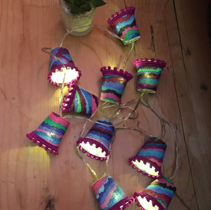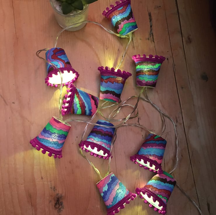 These mini lampshades have been upcycled from used plastic taster glasses.