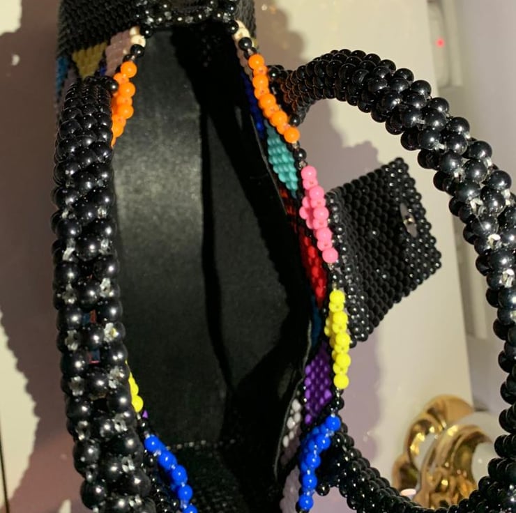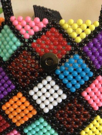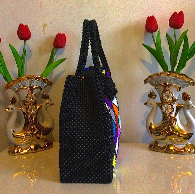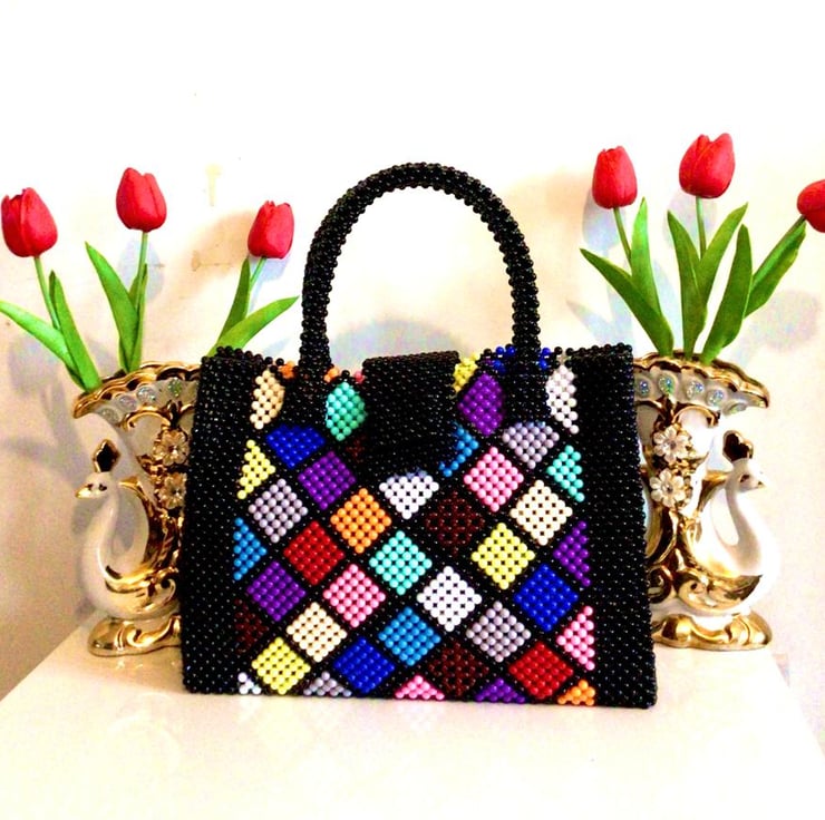 This handmade beaded bag is a right angle weave made with acrylic beads and clear thread. This is strong enough to carry all your daily essentials.
