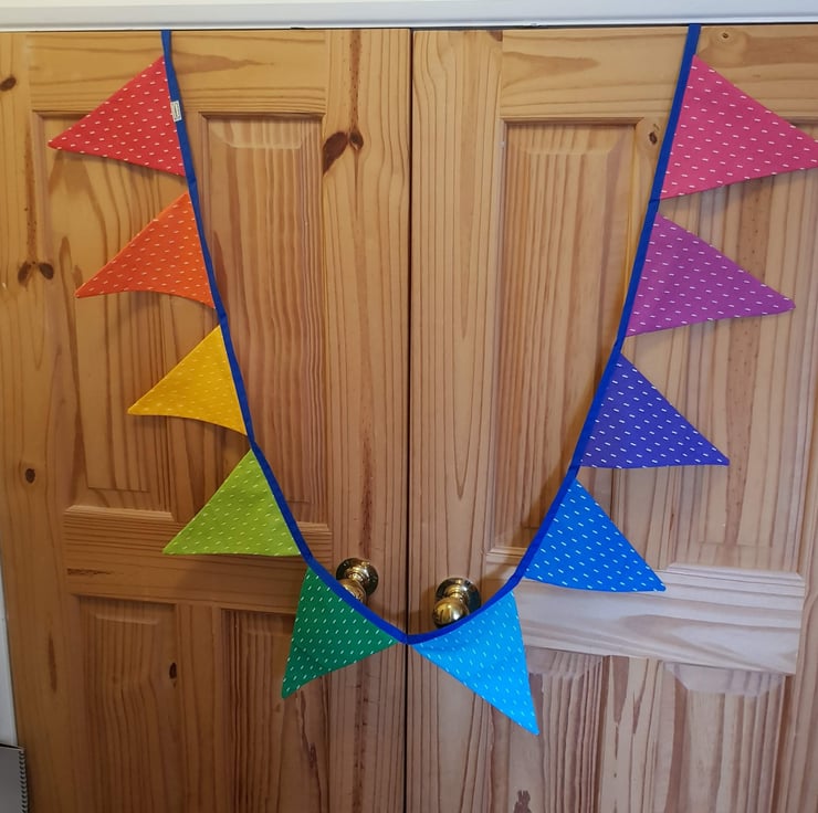 This cheerful bunting is made from good quality cotton. It has 10 penants and is 3m in length. It comes with a bag to keep it tidy when not in use. Only few left as the fabric is no longer available.