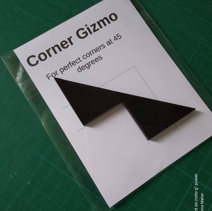 I make a lot of books and I teach bookbinding classes. When it comes to mitring the corners of the paper some people wing it – which is just fine. Others like to measure accurately to make sure they get the exact 45 degree angle, and to make sure the cut line is 0.7mm from the greyboard. The idea came for a corner gizmo tool which removes all that need for measuring.