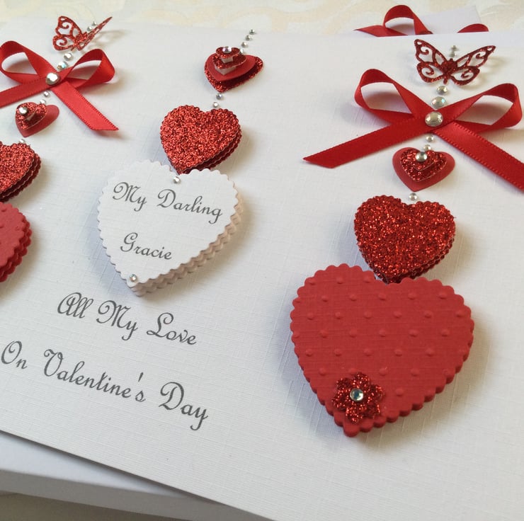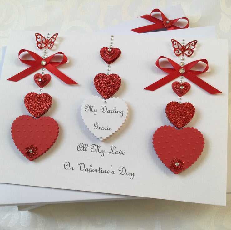 This handmade personalised Valentine’s Day card is A5 in size ( 210mm x 150mm) on 300gsm heavyweight linen card and can be personalised with any text for you. The heart in the centre can be personalised along with the text underneath.