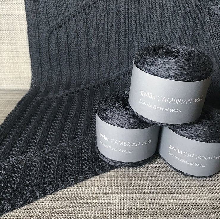 Knitting kit, with gorgeously soft Welsh yarn from Cambrian Wool. Make yourself a stylish Columella Shawl, which was a pattern originally published in Making Stories magazine in 2019.