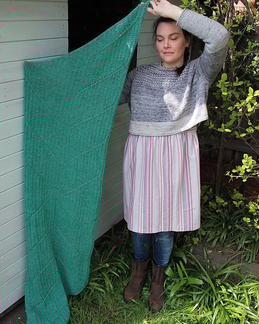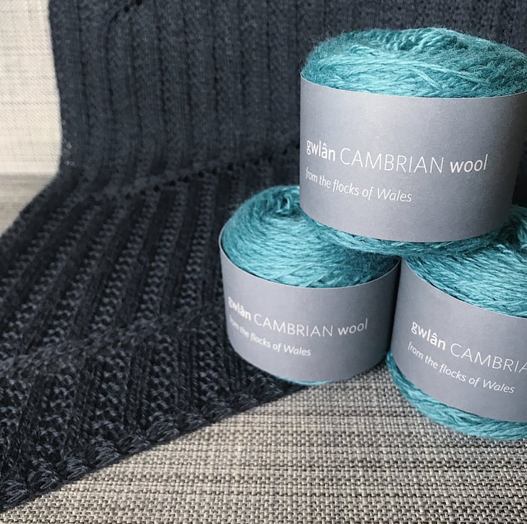 Knitting kit, with gorgeously soft Welsh yarn from Cambrian Wool. Make yourself a stylish Columella Shawl, which was a pattern originally published in Making Stories magazine in 2019.