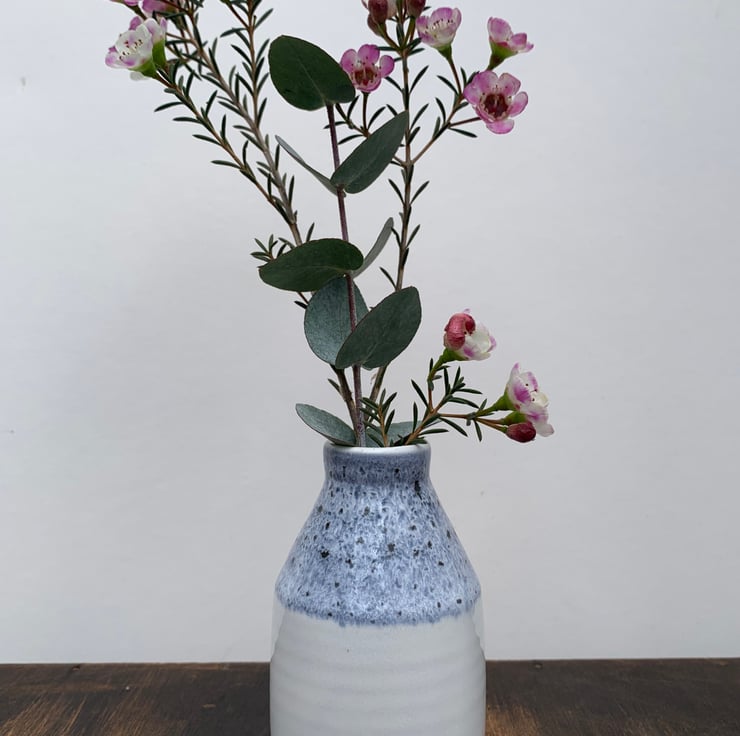 Handmade on the potters wheel, these vases are freely thrown, usually after a day of repeat production throwing.