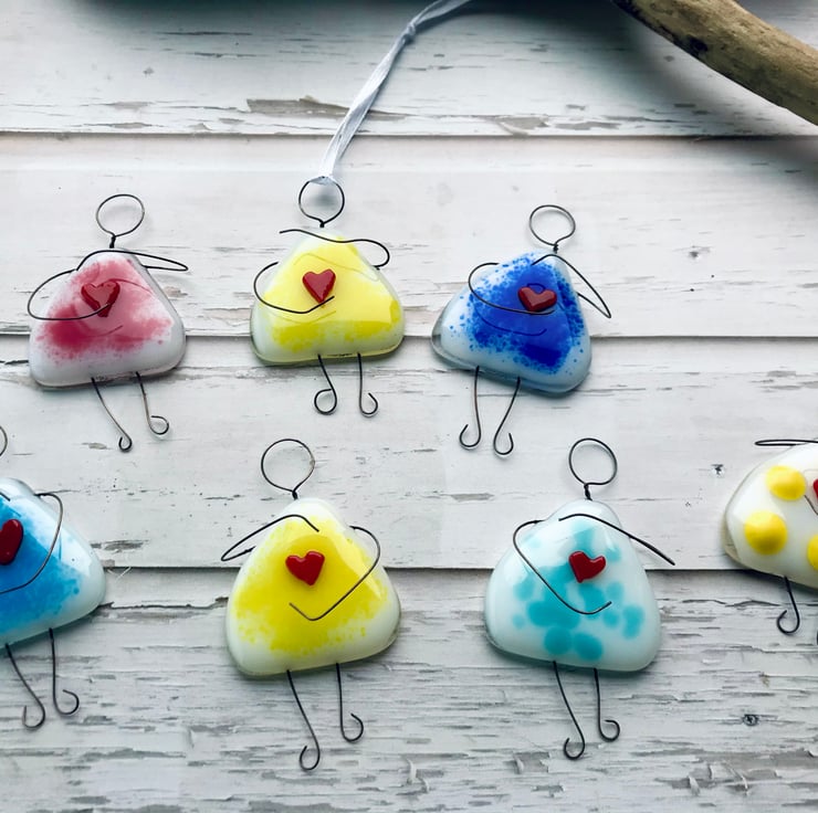 Are you wanting to send someone a hug or let them know you are thinking of them? This wire and fused glass girl holding a heart is a lovely way to do this.