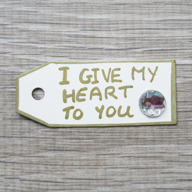It comes with a little hand written tag in gold metallic pen and a little diamante for a bit of sparkle -Text reads ‘I give my heart to you’.