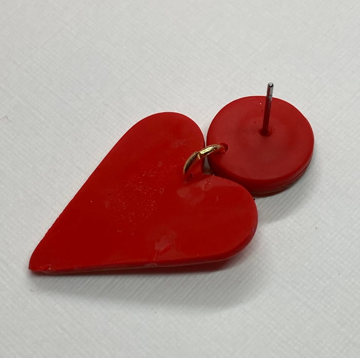 Red and Gold Heart Shaped Polymer Clay Earrings