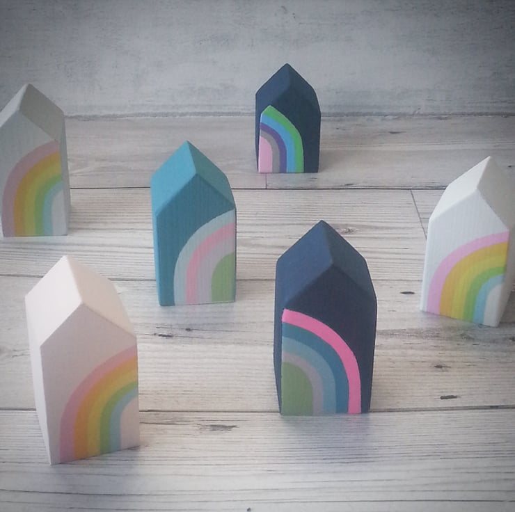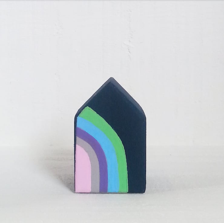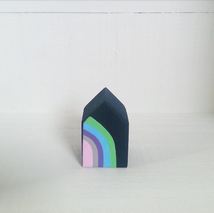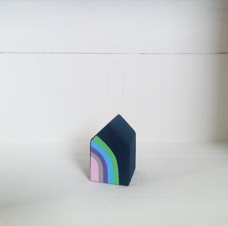 I moved to the countryside in 2019 and had been building up a stash of wood offcuts from other projects, intending to use them for firewood for the coming winter; realising that a lot of this wood was high quality pine which was too good to burn, I came up with the idea of using it to make little houses (a shape which is relatively easy to cut with limited woodworking skills/equipment). As it turns out, little houses are not only en vogue but they are the perfect canvas for experimenting with colour and pattern!