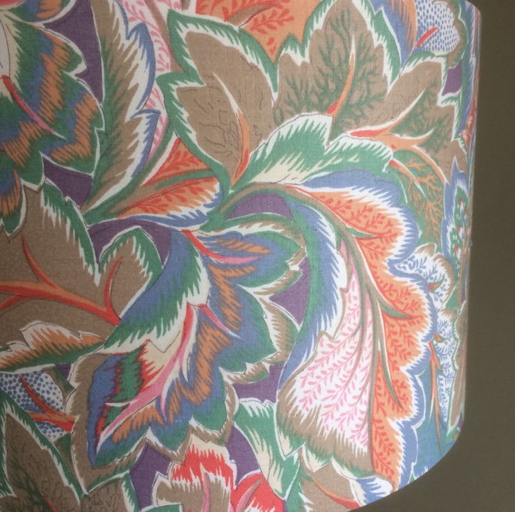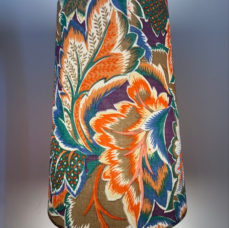 Ornate Multicoloured ATLANTA French 80s Vintage Fabric Lampshade - Late 80s French Marignan fabric in off the roll unused condition.
