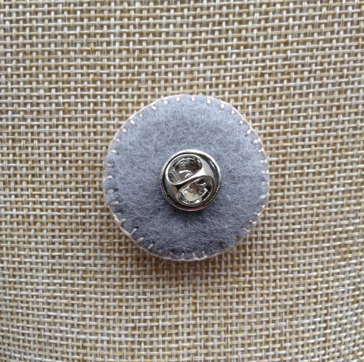 This little brooch is made from 100% wool felt. I have sewn tiny buttons and embroidered flowers to make a "meadow". I have then added some lovely vintage lace and a Tibetan silver butterfly bead. It is slightly padded with card and felt to help it keep its shape. The felt backing is attached to the front with tiny blanket stitch. The brooch is fixed to clothes with a butterfly style pin.