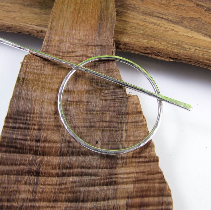 The ring is hand forged from 2mm solid Sterling Silver wire with hammered texture. The the pin is made from 2mm wire, shaped with a rounded blunt point and a paddle formed at he other.