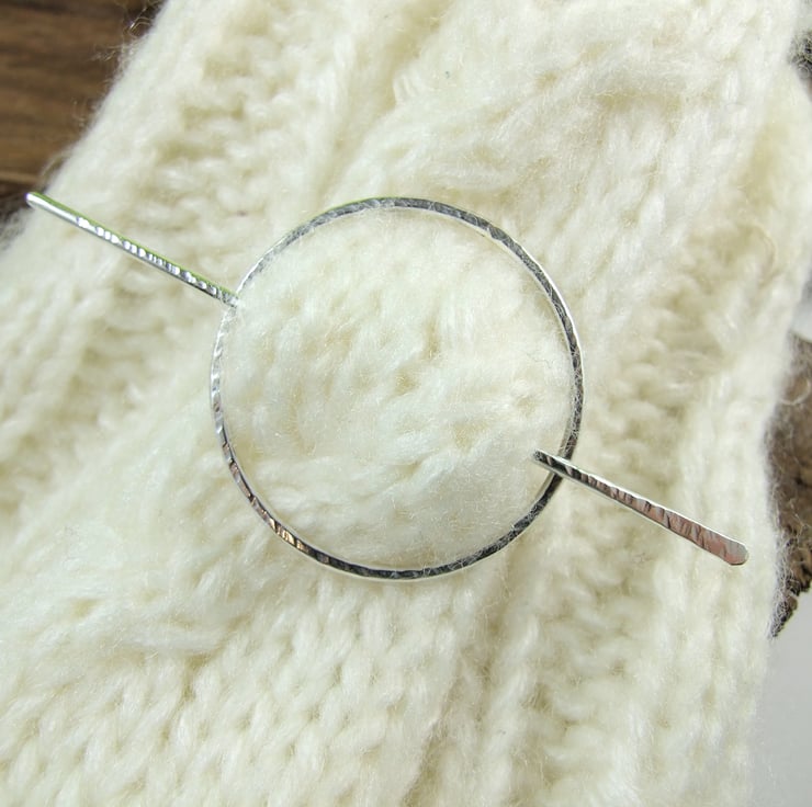 Hand forged hammered Sterling Shawl Pin for Open Weave or Knit Shawl, Scarf, Wrap or Cardigan.