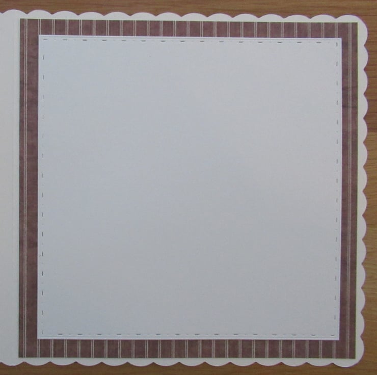 An 8x8 inch cream scallop edged card.