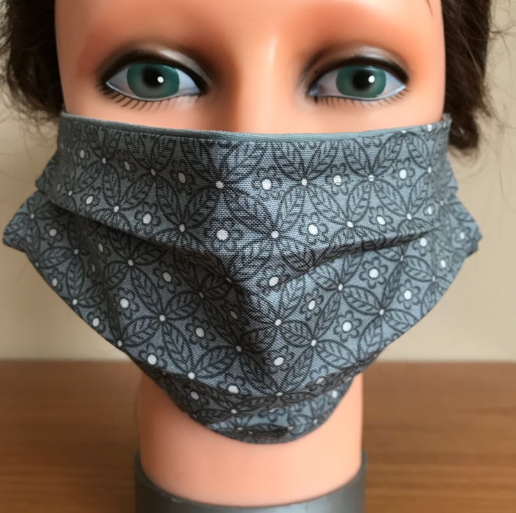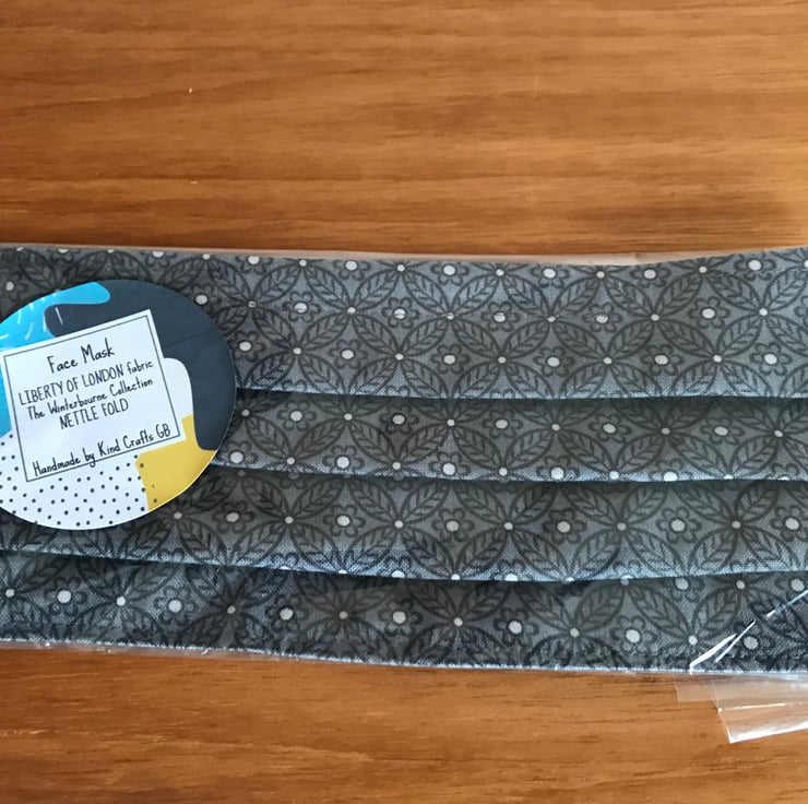 Each face cover/mask is made by Kind Crafts with double layers of fabric the front fabric is the Liberty cotton fabric print and the back is a plain grey cotton fabric. All 100% cotton.