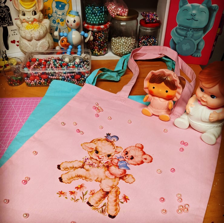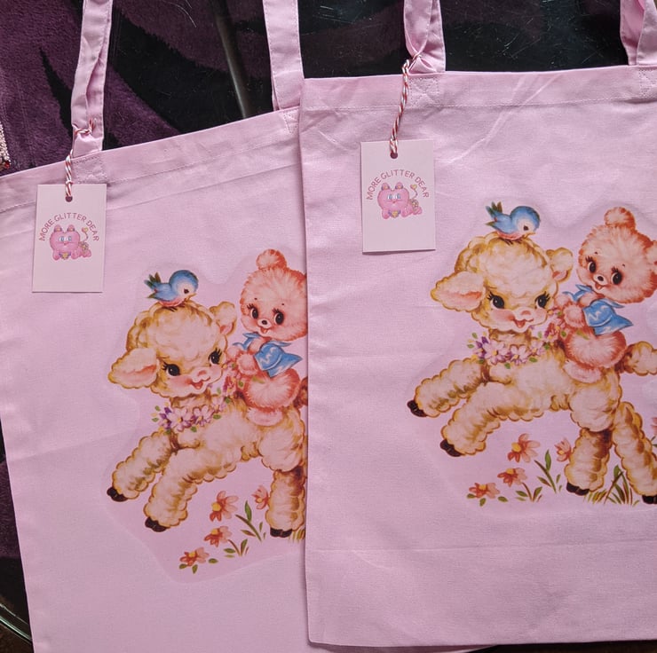 Tote bags made from ethically traded cotton, with a super adorable transfer, from an original Meyercord design.