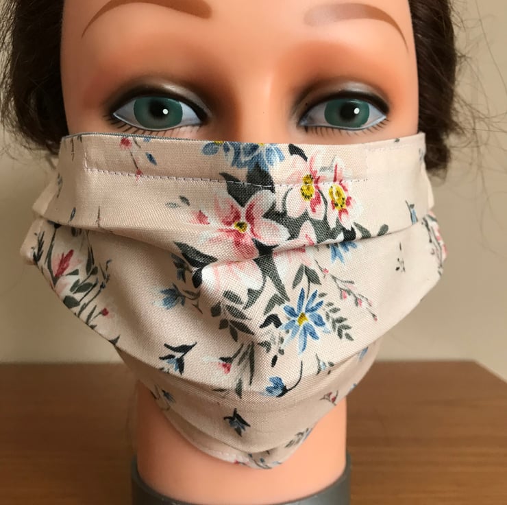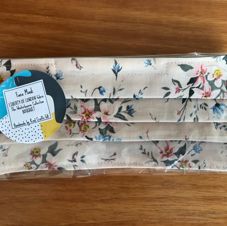Each face cover/mask is made by Kind Crafts with double layers of fabric the front fabric is the Liberty cotton fabric print and the back is a plain grey cotton fabric. All 100% cotton.