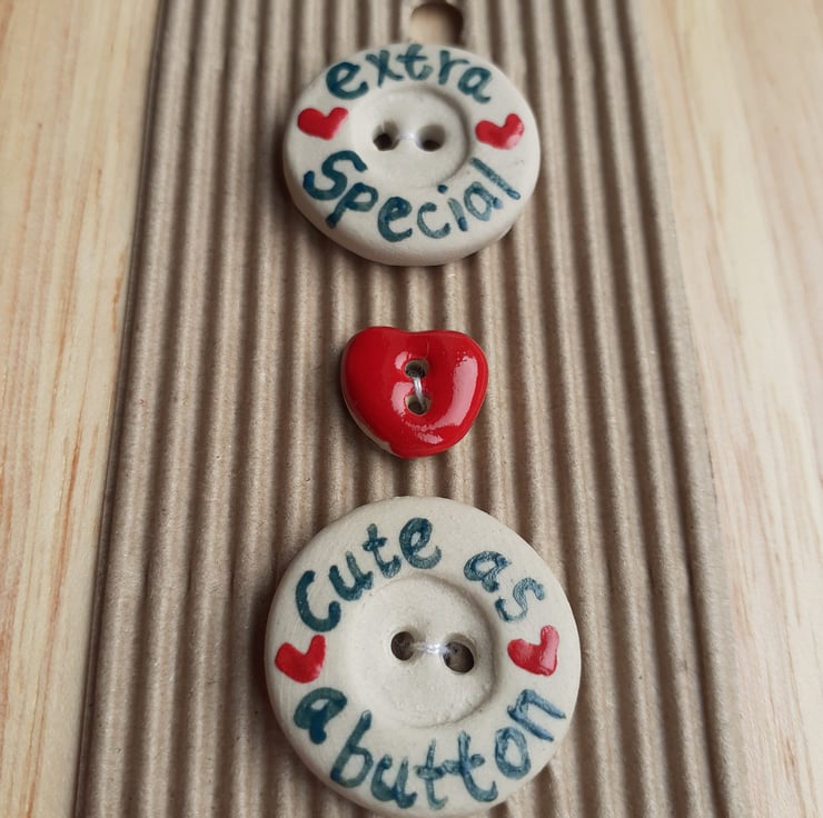 This set of 3 ceramic buttons are handmade by 'Incomparable buttons' in South Africa. The company provide a fair wage and good working conditions to local women.