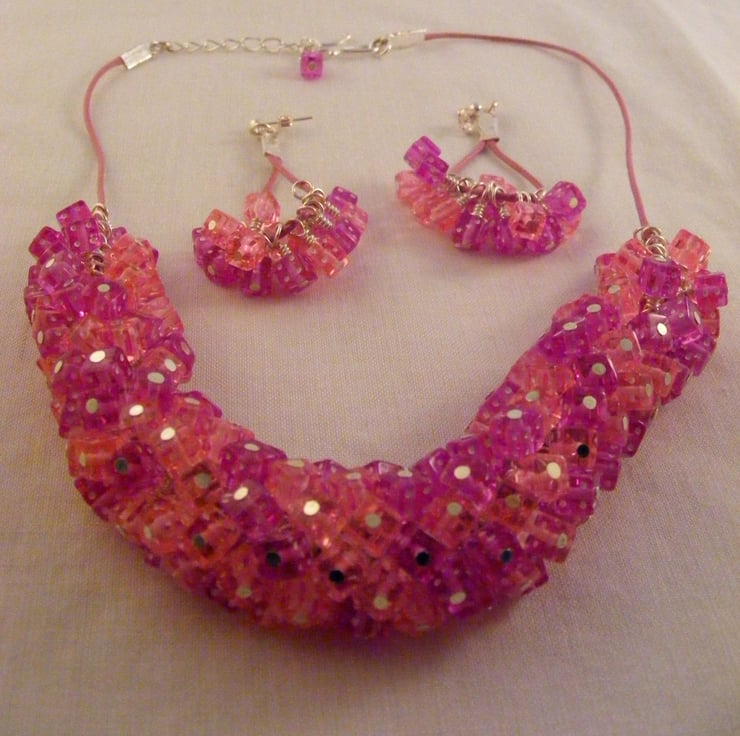 Pink and Purple Dice Jewellery Set.