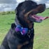 it has 1 d rings on top so you can clip your dogs lead to the harness
