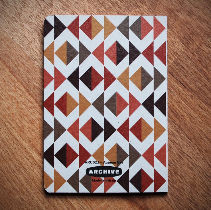 Archive series 2: With Autumn approaching in 2020 the colours of the Derbyshire countryside are reflected in these geometric patterns – available as single notebooks or as a complete series set of all three.