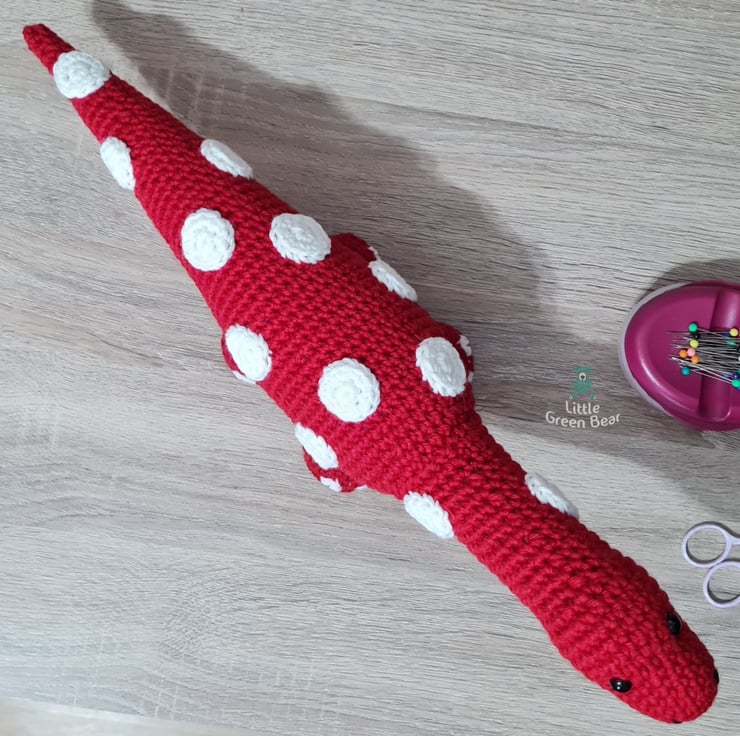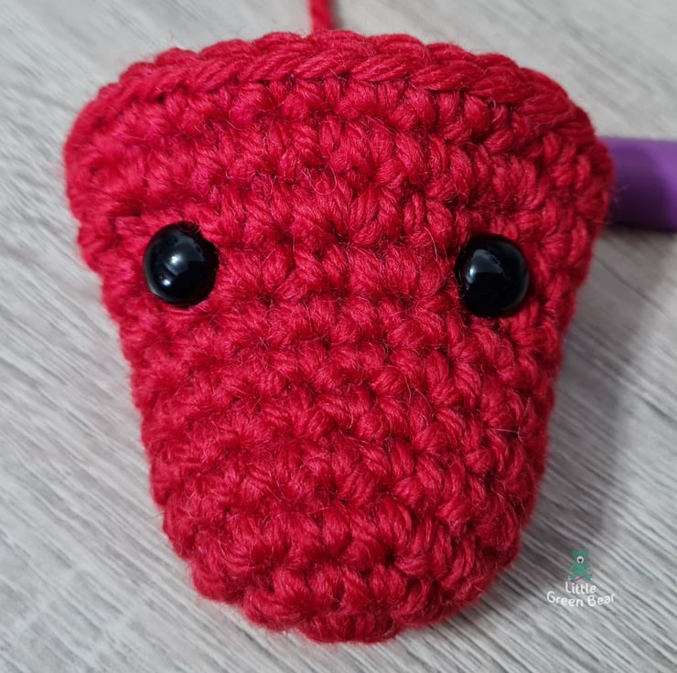 The 9 page pattern is intermediate skill level and uses UK terminology – if you would prefer US terminology, please message me. It is clear to follow with detailed instructions and lots of pictures for step by step making and assembly. There are also picture instructions for colour change, back loop only and invisible finish.