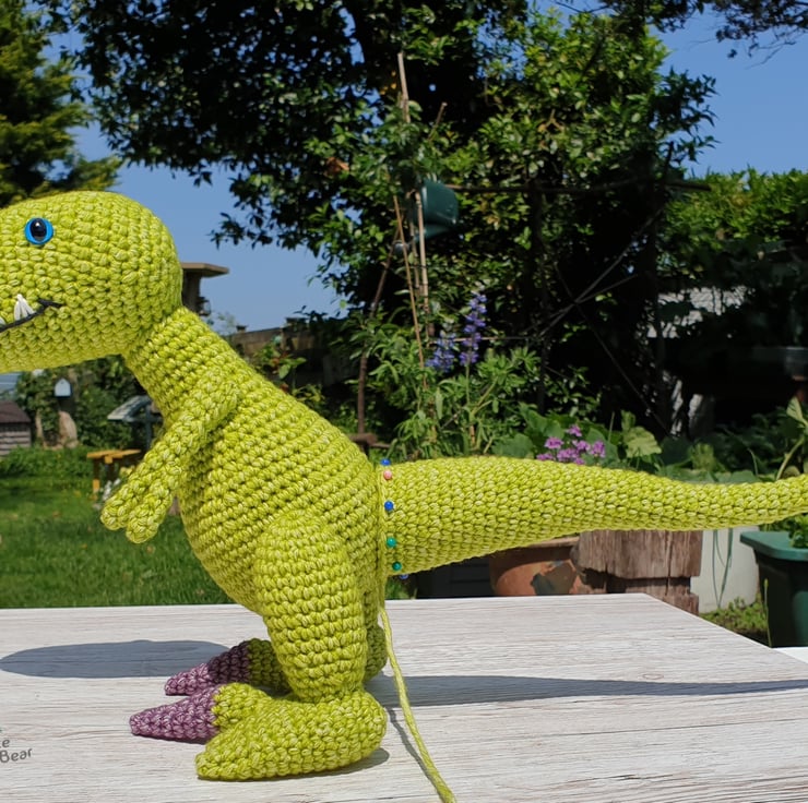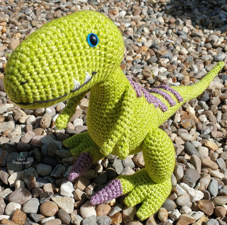 Ronnie the little raptor spends his days with his friends, practicing their running and jumping, sharpening their claws and always looking out for lunch. He stands 10.5 inches tall and 18 inches long (when made with the recommended materials).