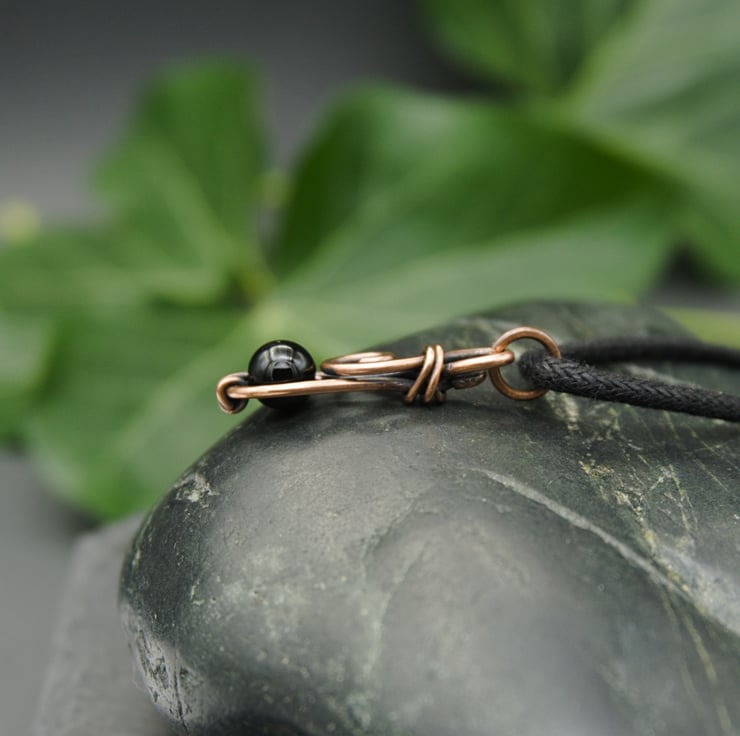 I've oxidised the copper & then polished it to a lovely shine. The pendant comes with a 2mm thick waxed black cotton cord, complete with handmade fastenings. The cord length is approx. 40cm but I can supply a different length if required - please let me know your preferred length via the 'choose options' button.
