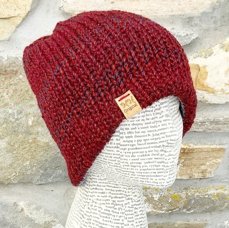 Sparkly Red and Grey Hat. Reversible.