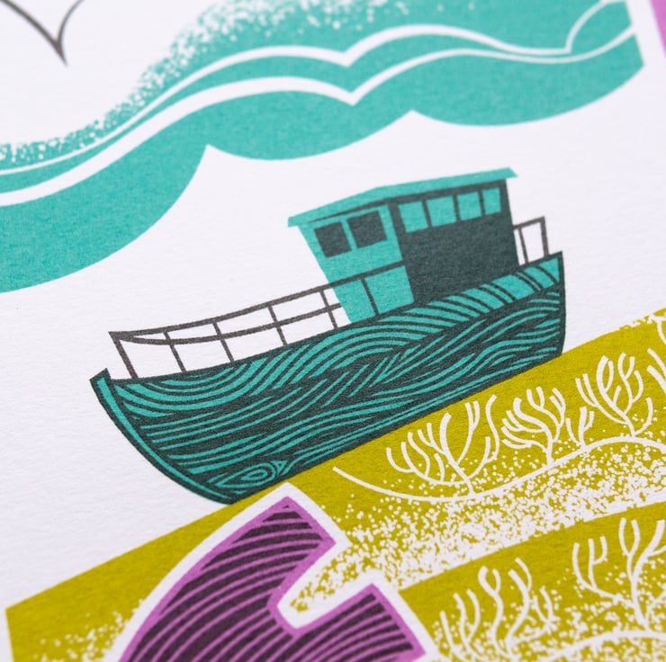 This "Boat House" screen print is from a limited edition of 25. Each one is named, signed and numbered by me.