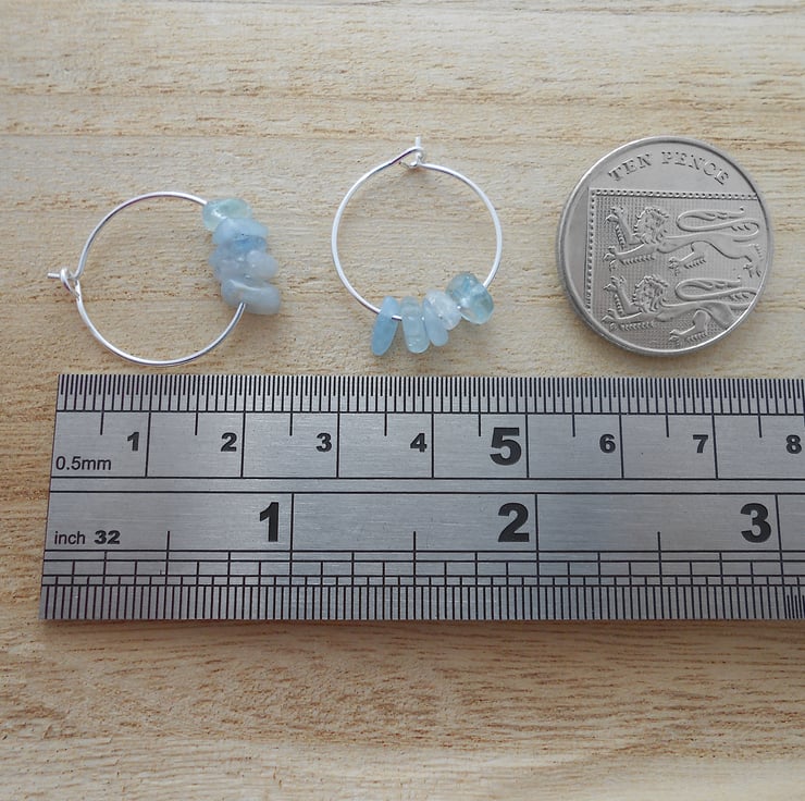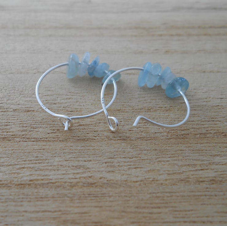 Aquamarine earrings in Sterling Silver. Sky blue aquamarine with thin hoops both stamped "925". Come wrapped in an organza bag. A Great March Birthday gift idea for a loved one as aquamarine is the birthstone for March. Also a great gift idea for a lover of the colour blue. If that is you, why not treat yourself instead!