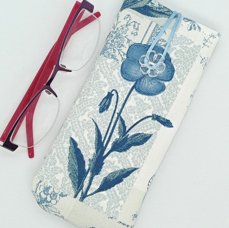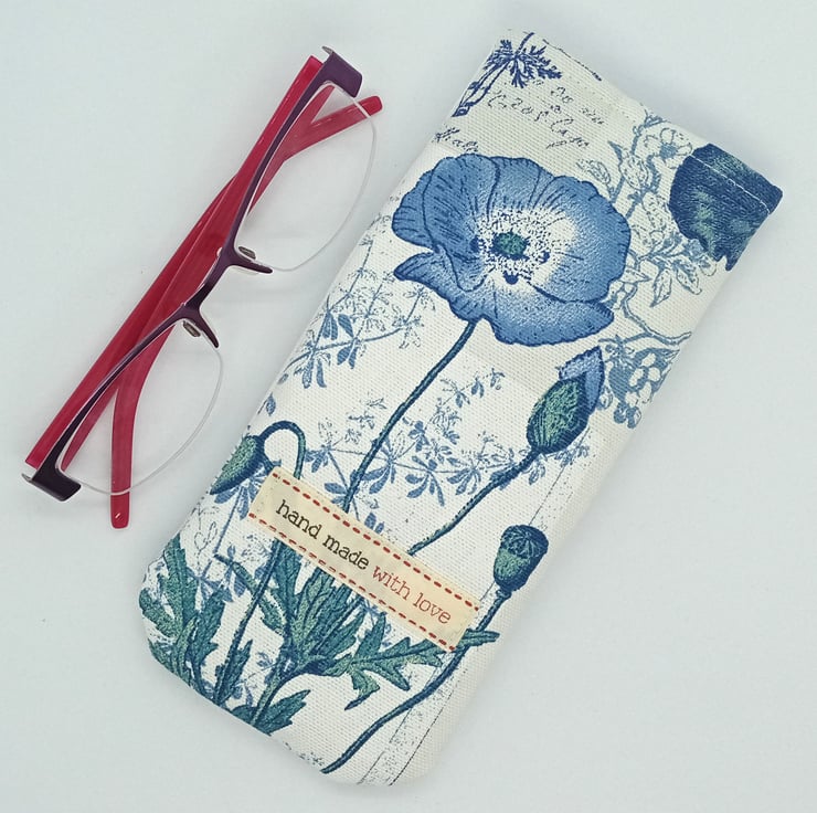 It is wadded to protect your glasses and features a handmade with love label on the back. Lining is in blue cotton.