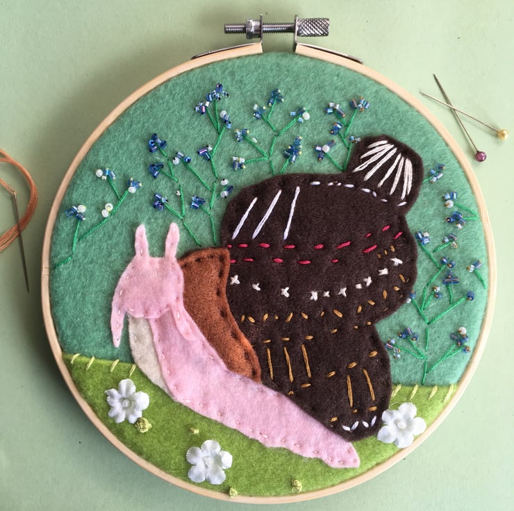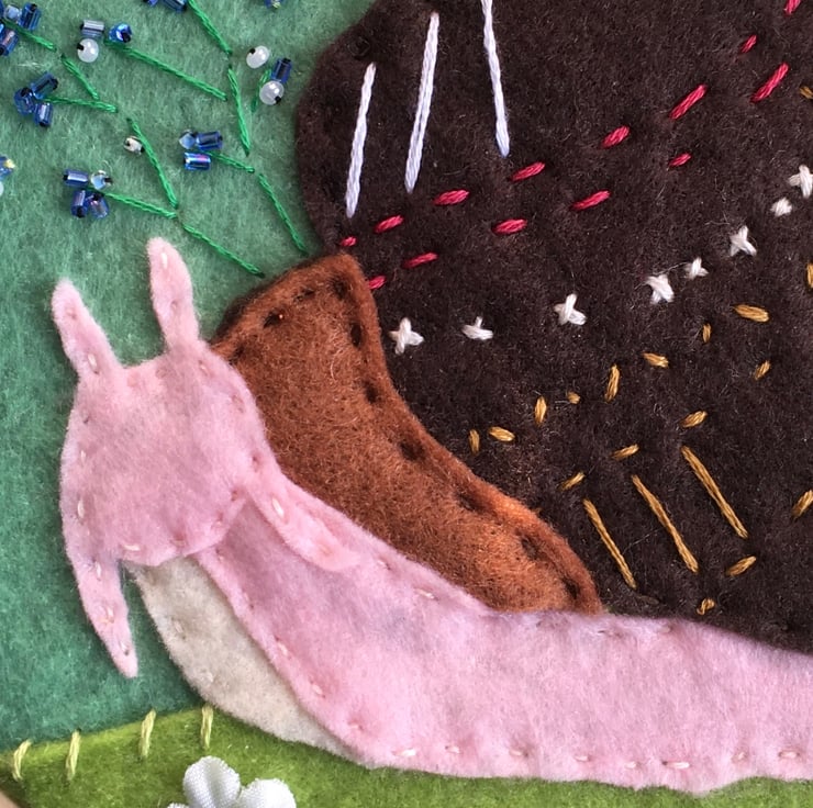 The picture is made from layers of felt and has been decorated by hand with embroidery and bead work. it has been backed with a layer of felt to finish it off.