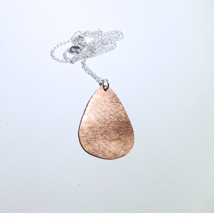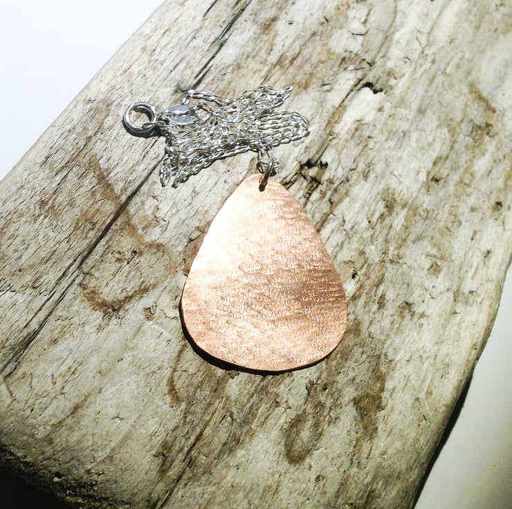 I have created this lovely pendant by hand sawing the shape from copper sheet before giving it an attractive hammered finish to create an interesting texture.
