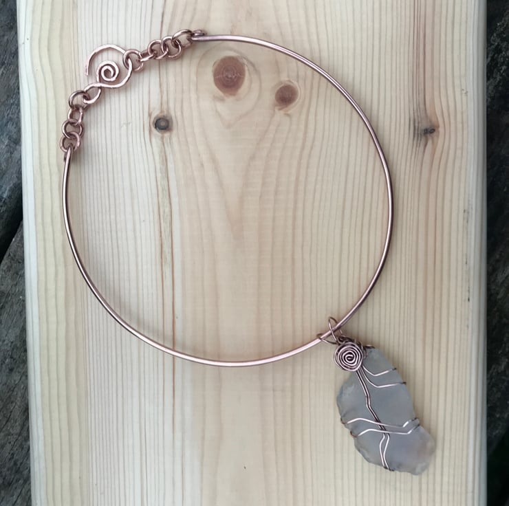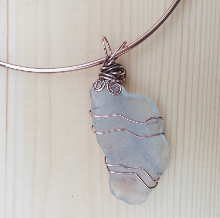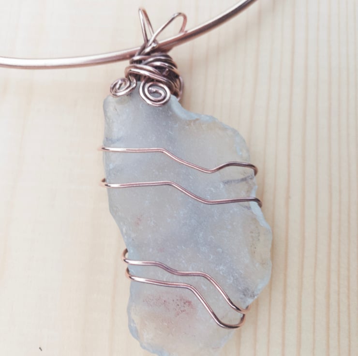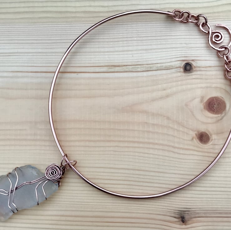 Large Sea Glass and Copper Wire Wrapped Pendant Torque Necklace