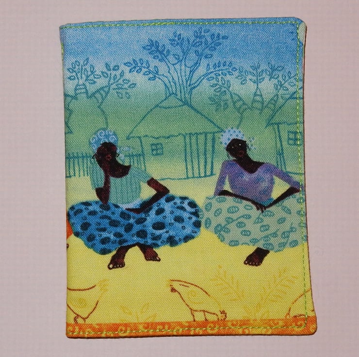 These traditional African ladies are sitting in front of their houses in their colourful dresses. The needle case measures approx. 4.5 x 3 inches , and it is lined in toning fabric and has four felt leaves for your pins and needles.