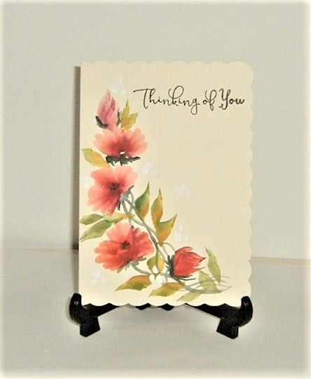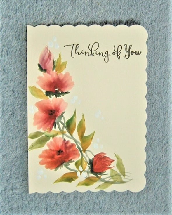 Painted using quality artist's paints on cream coloured card stock, it comes complete with a matching cream envelope in a clear polybag to protect it.