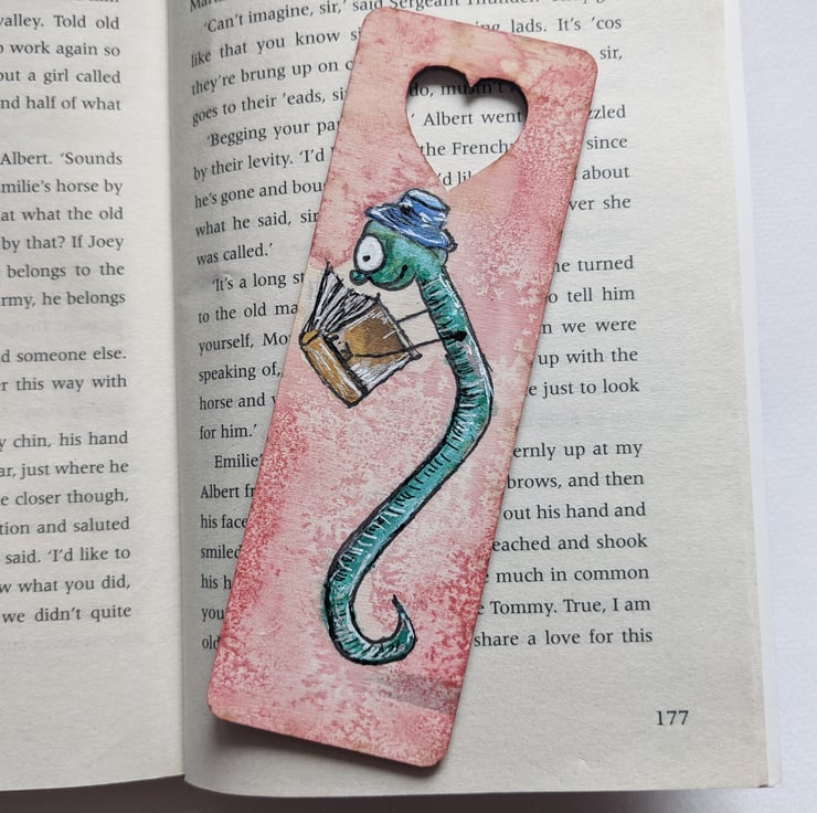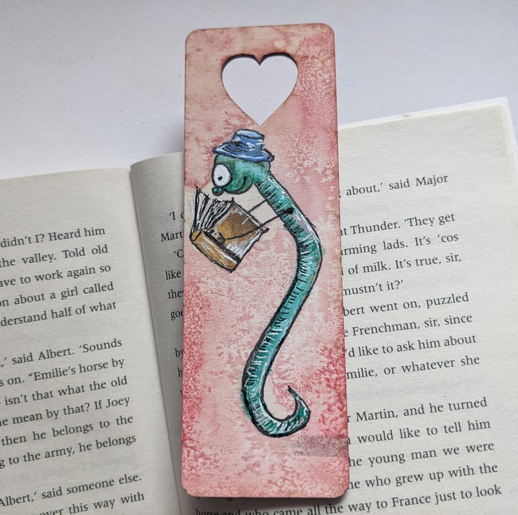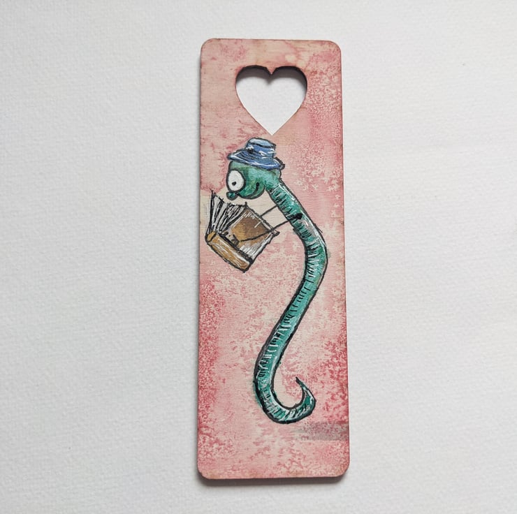 This is Brian the Bookworm and he's available as a wooden bookmark.