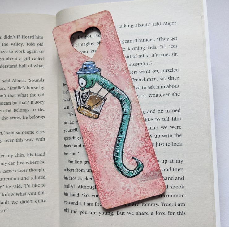 Once the bookmark is painted, and your chosen personalisation added on the back, then the bookmark is finished in a spray varnish on both sides to protect the artwork underneath.