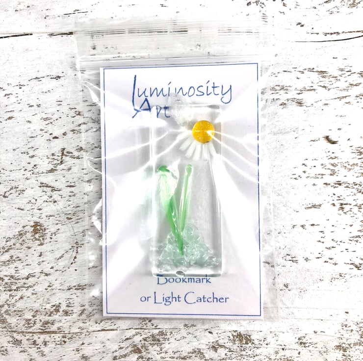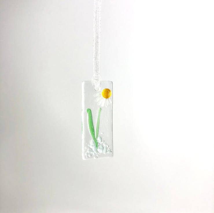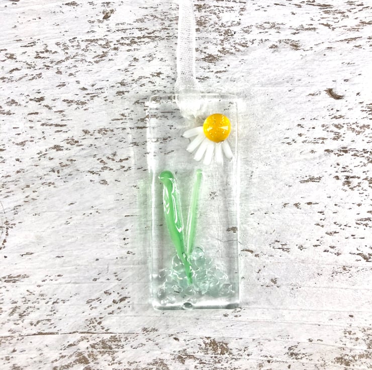 A lovely little handmade glass hanging that can either be hung as a light catcher or used as a bookmark.