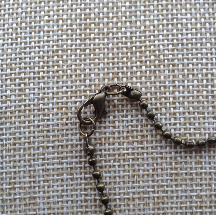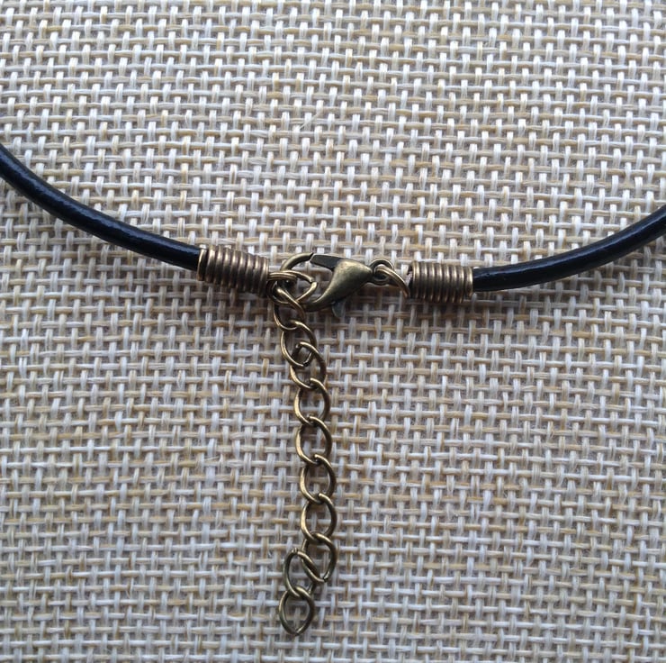 You can have eithen an 18inch ball chain or a 16inch black leather cord with 1.5 inch extender chain. Choose from the options drop down on the upper right of this page.