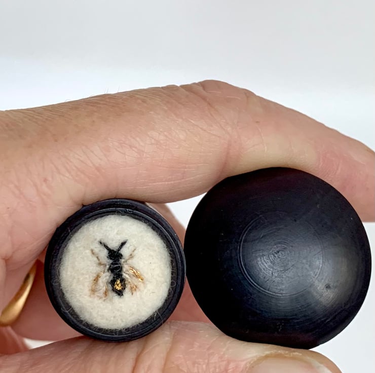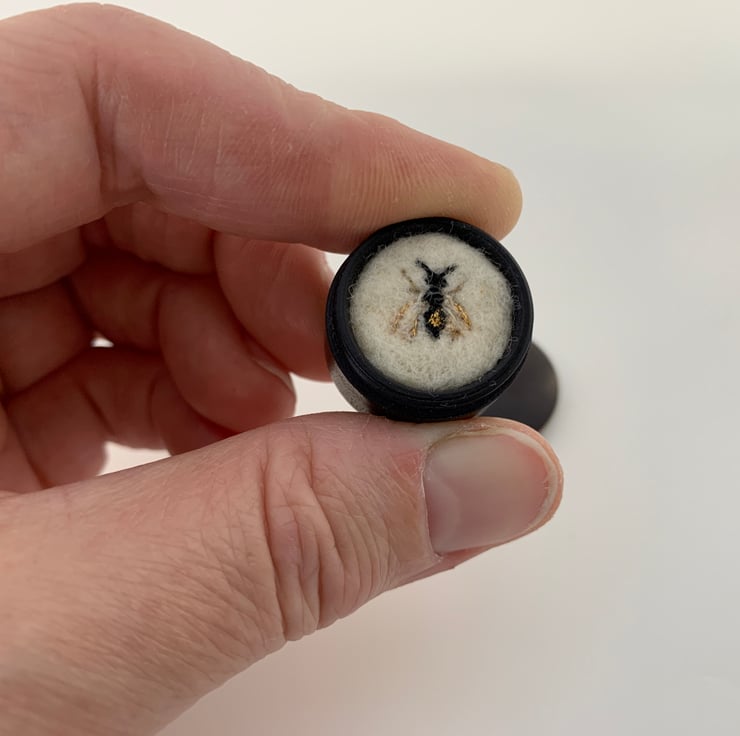 For this bee, the choice of container was very, very obvious, the tiniest wooden turned pot.