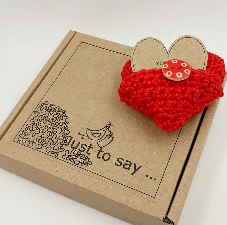 The heart comes in tissue in a labelled PIP (Postage in Proportion) box all ready to be given or posted on.