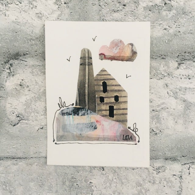 Original art ACEO in watercolour and collage Cornish tin mine