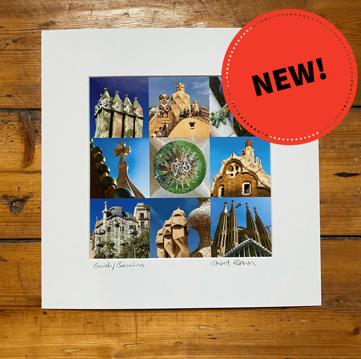 A new print featuring Gaudi architecture, sculpture and mosaic work, photographed around Barcelona in 2017.