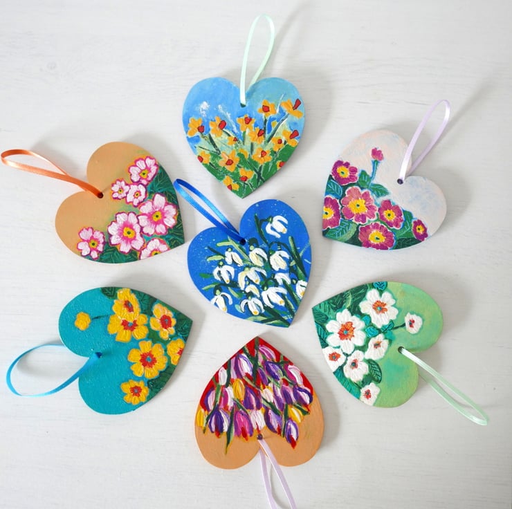 The heart measures 3" x 3" (7.50cm x 7.50cm) and it looks like a mini painting that can be hung as part of an art collection. It is perfect as a housewarming gift for gardeners or anyone who loves flowers.