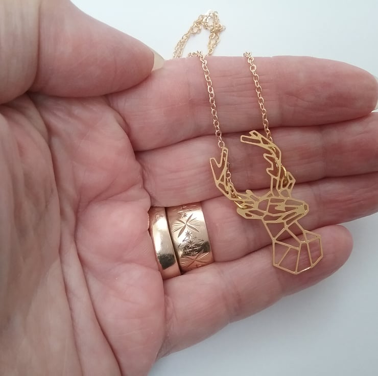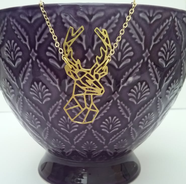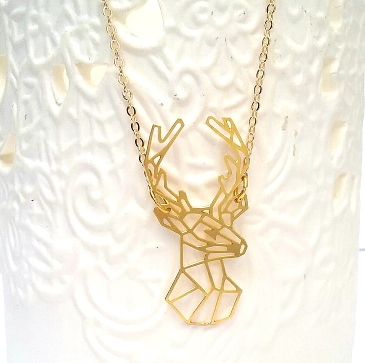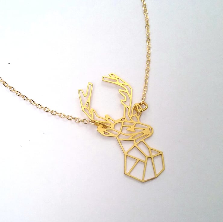 .Quality Raw brass laser cut deer geometric all which hangs from a
