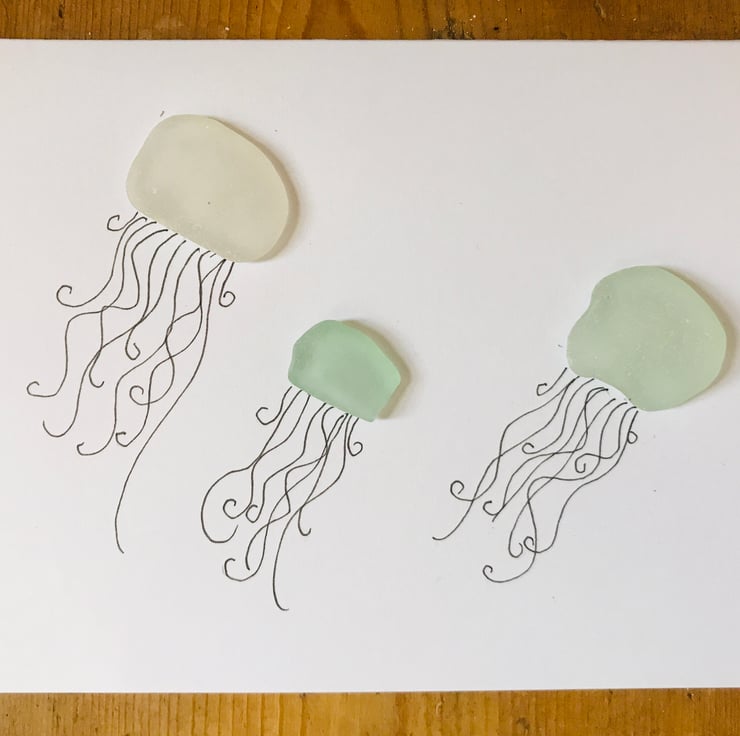 I am lucky to live 5 minutes from the beach and visit it daily with my family or my dachshund Betty. I have made my cards with the pieces of sea glass and pottery I have found along the way.
