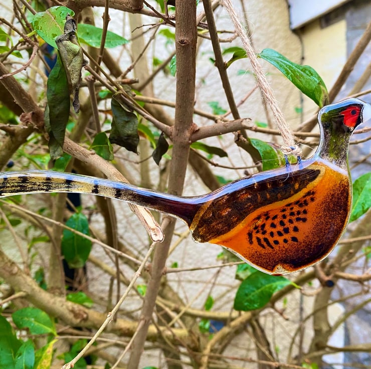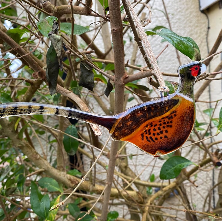 I hand cut each of these birds by hand out of a large sheet of glass, I then decorate using glass powder. They are then loaded in to my kiln to fire. These are not mass produced and may each differ slightly. That's what I love about Handmade that nothing is exactly the same. Once they have been fired I clear, tidy up and get ready to post out to you.