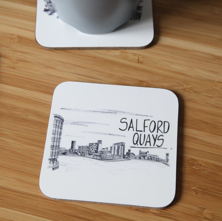 This coast will be great for any collector who likes tea or coffee. With it featuring the Salford Quays from my original black and white illustration. Its now been transferred to this coaster option.